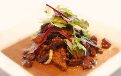 פולנטה מושחמת עם גבינת עיזים וראגו פטריות
