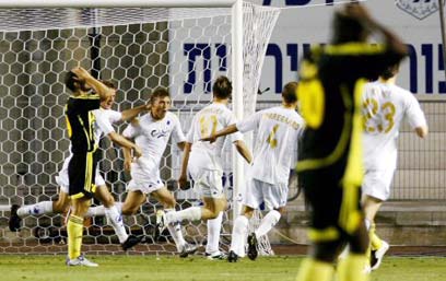 שהתמונות הללו לא יחזרו. שחקני בית"ר מול קופנהאגן לפני שנה (רויטרס)