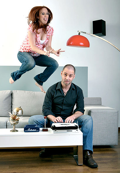 אז זו ההזדמנות של המכורים להסנפת דבק, להישען אחורה ולהירגע: אורן (34) וטלי (31) הכירו לפני שמונה שנים. היא למדה אז משחק בלונדון, קצת אחרי שסיימה לשחק בדומינו גרוס המיתולוגית, יחד עם רועי בר נתן, אסי כהן, גורי אלפי, מיה דגן, רותם אבוהב, יובל סמו ואחרים. הוא התחיל בדיוק את קריירת הכתיבה שלו וכתב את המחזה "דצמבר" (עם מיכל ינאי ויובל סגל) לפסטיבל פותחים מסך בתיאטרון בית ליסין אחרי שסיים שלוש שנים בבית צבי וכשל בניסיונות להיות שחקן ("לא התקבלתי אפילו לפרסומות של ערוץ הקניות, הייתי פתטי"). היה להם חבר משותף שבזכותו נתקלו כל הזמן זה בזו. "בדיוק הגעתי לביקור בארץ ועמדתי לחזור לחצי שנה נוספת של לימודים בלונדון", טלי נזכרת. "לא חיפשתי בכלל מישהו, מי חשב על זה בכלל? הוא היה די שקוף, אני הכי לא הייתי בעניין, אבל ראיתי אותו כל הזמן ברקע, ככה בלבן של העין. לאט לאט הבנתי שיש לו עיניים נורא טובות ואמרתי לעצמי, יאללה. מימשנו את זה יומיים לפני שחזרתי ללונדון. אחר כך במשך ניהלנו קשר של מכתבים. זה היה מדהים, הרגשתי כמו גיבורה של סרט מלחמה, יושבת ומחכה לדוור".