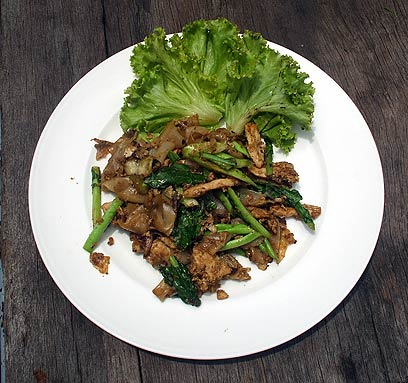 בעיקריות השתעבדתי ליצירה בעלת השם הסבוך "פאד קפאו לאד קאו קאי דאו" 58) שקל:( בשר בקר קצוץ, מתובל בשורשי תיבול תאיים, עלי ריחן, בצל, שום ופלפל. כל הכבודה הזאת רובצת על מצע אורז לבן (טיפונת מאכזב) ומעל כולה מרחפת חביתה. זה היה כל-כך טעים, שלא התחשבתי באישה ממול. השתלטתי על המנה וחיסלתי אותה בתאוותנות.