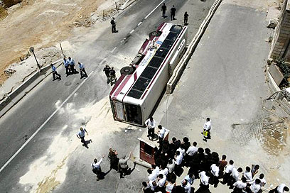 האוטובוס שהמחבל הפך (צילום: רויטרס)