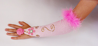 3. הכפפות מוכנות. מה שנותר הוא לקשט: אפשר למרוח דבק נצנצים לכל אורך הכפפה, לצייר בעזרת טוש פרחים ופיתולים, להדביק על ה"טבעת" פרח, להדביק פרווה מסביב לפתח ועוד ועוד.
