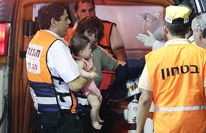 תינוקת מובאת לבית החולים שערי צדק (צילום: דודי ועקנין)