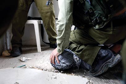 מגיעים אל היעד ופורקים במהירות. כמה ילדים רואים אותנו רצים בסמטאות הצרות שמסביב לבית המבוקש, בורחים ונעלמים בן רגע לתוך הבתים. כבר כמעט חודש אני צרוד, ובמקום להזיז את האנשים מהדרך בצעקות אני שולח יד מאיימת ומנער את הנשק כלפיהם. זה עובד. לפי המודיעין, בבית שמאחורי המבוקש גר שוטר כוח 17 שחמוש בקלצ'ניקוב, אז אני צריך גם להעיף מבט לעבר הבית שלו כדי לוודא שהוא לא מחליט לסגור איתנו חשבון על החברים שהלכו לו בחומת מגן.