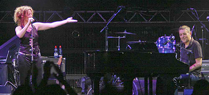 הפסנתר שמפריד בין שניהם לא פוגע באינטימיות היפה שביניהם, המתעצמת ב"עטור מצחך". בסופו הקהל שוב על רגליו, מריע ארוכות. "חברים", רביץ מעמידה פנים קשוחות, "אנחנו מאומנים להמשיך בהופעה". ואז, רק שניהם על הבמה, היא מרגשת ב"וידוי".