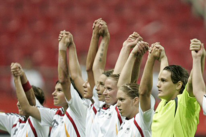 גרמניה חוגגת. בעולם, כדורגל הנשים יחסית מצליח (צילום: AP)