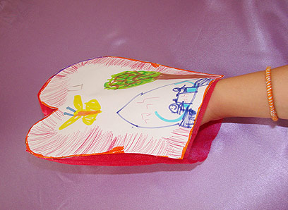 3. הדביקו מעל את ציור הכפפה של ילדכם ויש לכם כפפה אמיתית!