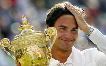 פדרר בפוזה אופיינית בווימבלדון. התמונה תשתנה הערבלום: AFP)