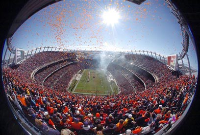 האצטדיון שבו ינאם אובאמה, בעת משחק של הדנבר ברונקוס (צילום: AP)