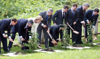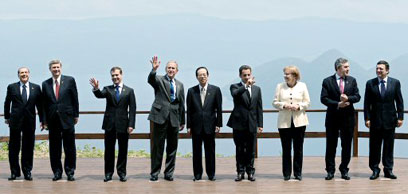 מנהיגי ארצות הברית, יפן, רוסיה, בריטניה, גרמניה, צרפת, קנדה ואיטליה קראו בהצהרה לכל הכלכלות הגדולות בעולם להצטרף למאמץ המשותף ולהפחית את כמות הגזים הנפלטים לאטמוספירה וגורמים, לדעת מדענים, להתחממות כדור הארץ. "ניתן להתמודד עם האתגר הגלובלי הזה רק באמצעות תגובה גלובלית - תרומה של כל הכלכלות בעולם", נאמר בהצהרה.