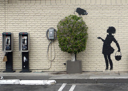 בשנה שעברה קפץ בנקסי לביקור בבית לחם שם צייר כמה ציורים. בין השאר, צייר על קירות אחד הבתים חייל צה"ל שעוצר חמור לבדיקת תעודות. מתחת לעמדת שמירה צה"לית, הוא צייר עכברוש מחזיק ברוגטקה ועל קיר חנות מקומית יצר יונת שלום צחורה עטויה בשכפ"ץ.