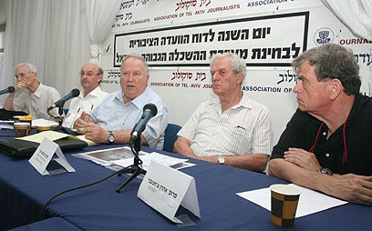 פרופ' צ'חנובר (מימין) במסיבת העיתונאים (צילום: עופר עמרם)