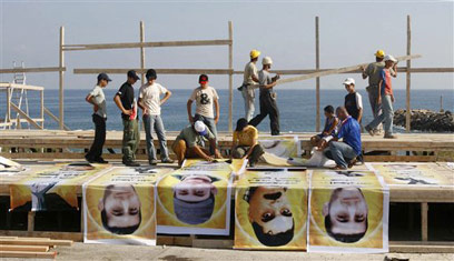 במשך כל היום עמלו אנשי חיזבאללה והכינו בנאקורה במה ועליה תמונותיהם של הרוצח סמיר קונטאר ושל ארבעת האסירים האחרים שישוחררו עמו מחר במסגרת העסקה.