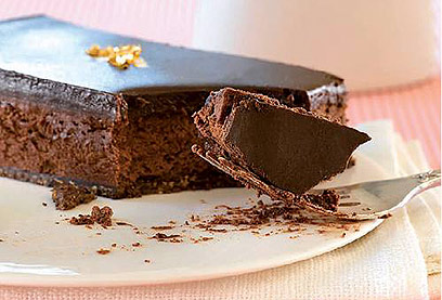 העוגה שלפניכם היא אולי העוגה המעודנת והנפלאה ביותר שטעמתי בפסטיבל השוקולד בנובמבר האחרון בניו-יורק. העוגה",אובססיית שוקולד ולרונה," נוצרה על-ידי השף מייקל אוונס עם השוקולד פראלין "ג'יאנדוייה" מבית "ולרונה" (בגרסה שלפניכם השתמשתי בשוקולד מריר משובח עם אחוזי מוצקי קקאו יחסית גבוהים, לפי המלצתו.(