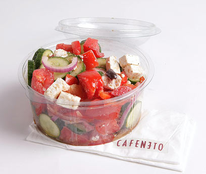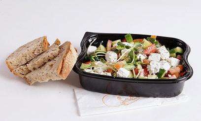 סלט יווני של קפנטו. מחיר: 37 שקל. משקל: 1,116 גר'. שומן: 108.9 גרם.
