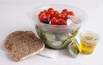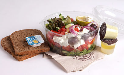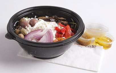 סלט יווני של קפה קפה. מחיר: 38 שקל. משקל: 867 גרם. שומן: 71 גרם.