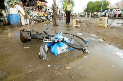 זירת אחד הפיצוצים באחמדבאד, היום (צילום: AFP)