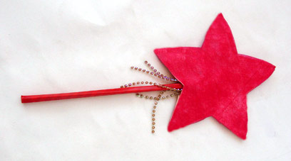 - מרחו דבק פלסטי בקצה השיפוד והשחילו את הכוכב. השאירו לייבוש מספר דקות ונופפו בשרביט לכל עבר...
