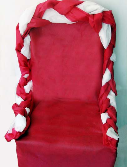 - הצמידו הצמה מסביב לגב הכיסא בעזרת סיכות ביטחון וכסא המלך מוכן!