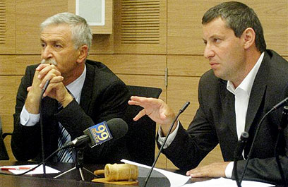 ח"כ סטס מיסז'ניקוב (מימין) וח"כ ישראל חסון היום בכנסת (צילום: צבי לביא)