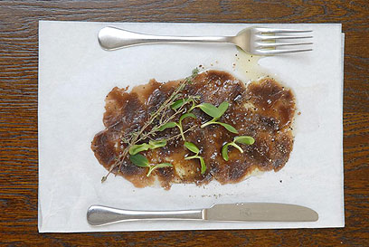 - הגשה: מוציאים את הנתח, מנגבים היטב ופורסים אותו דק.