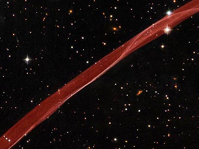 הסרט האדום שבתמונה, המרחף לו בין הכוכבים, אינו צעיף משי ארגמני שהושלך מחללית במעופה. מדובר בשאריות של סופרנובה, התפוצצות של כוכב כתוצאה מעודף מסה, שהתרחשה לפני כ- 1000 שנים. הפס עדין שבתמונה, צולם על ידי טלסקופ החלל "האבל" של נאס"א.