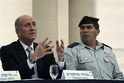 "מערכת הביטחון תמכה". אולמרט ואשכנזי בכנס (צילום: AP)