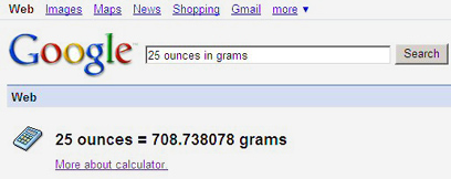 מנוע החיפוש של Google מציע שיטה פשוטה לבצע המרות של מידות ומטבעות, באמצעות הקלדת שאילתה קצרה. למשל, אם אתם רוצים לדעת כמה הם 20 דולר בשקלים עליכם להקליד פשוט shekels in 20 dollars, ולהקיש Enter.