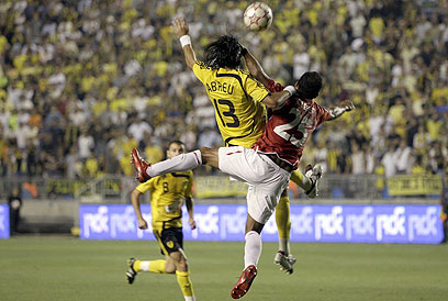 שיתוף פעולה מרשים במשחק הראשון. אבראו (צילום: דודי ועקנין)
