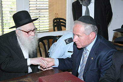 עושים סולחה. הרב קרליץ והשר דיכטר (צילומים: שוקי לרר)