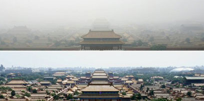 העיר האסורה בבייג'ינג בתמונה מה-28 ביולי (למעלה) ומאתמול (צילום: רויטרס)