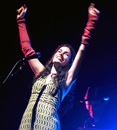 ושוב היא מפטפטת עם הקהל בין השירים. ובין ריקוד לריקוד ברגליים יחפות היא מספרת שבימים האחרונים החליטה לעשות כושר ורצה כל יום על שפת הים "וקיבלתי יבלות ברגליים". אחר כך מזעיקה את דויד דונאטיין שותפה לאלבום ש"יבוא להציל אותי לפני שאמשיך לדבר שטויות". והוא מתייצב משועשע בחזית, מדגים את המילים שלמד בעברית ("מה העניינים", "גדול", "חבל על הזמן" ו"סבבה") לפני שעובר לכלי ההקשה תוך כדי שירה איתה.
