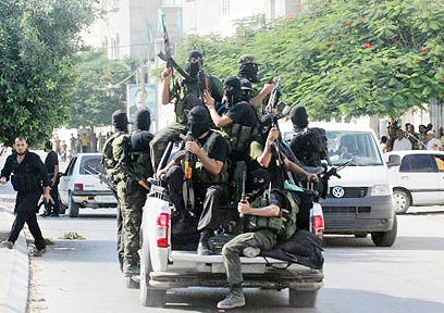 אנשי החמאס המתינו לשבים בעזה (צילום: AFP)
