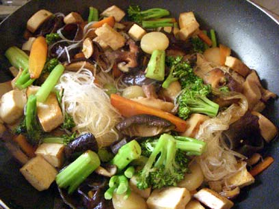 מעדן בודהה - אטריות שעועית (צלופן), ירקות מוקפצים וטופו