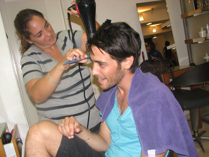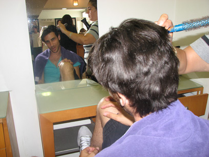 בעוד מרבית חברי הקאסט התייצבו בזמן לשיפוצי פריזורה אחרונים במספרתם של ז'קלין ואביגדור ליכטנשטיין בכוכב הצפון בתל אביב, עידן אשכנזי שוב הגיע באיחור של שעה. סיבת העיכוב: התיכו-פטריוט התייצב למבדקי קורס טיס שהתארכו. בדרך אל הספר, לאחר שמיהר להגיע, הרכב שלו גם נשק קלות באוטו שלפניו. ליפה התואר, הפח והבלורית - שלום.
