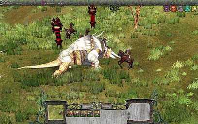 כאן בעצם מתחיל המשחק, וניתן לראות שמדובר בראש ובראשונה במשחק אסטרטגיה בזמן אמת. בראש המסך תראו את המשאבים שברשותכם - עץ, זהב, אבנים, אהבת האל ואבני מאנה - וכמה מבנים מפוזרים שמהווים כרגע את האימפריה שלכם.