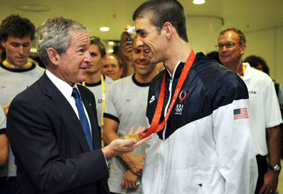 פלפס לא שכח גם להתייחס לאוהד המיוחד ביציע: "כשהסתכלתי למעלה אחרי הניצחון, היה כיף לראות שם את הנשיא בוש, מנופף בדגל ארצות הברית ומסמן לי 'וי'. לא בכל יום הנשיא בא לעודד אותך".