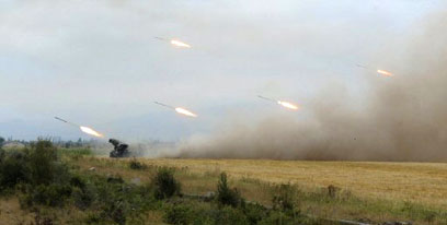 ירי ארטילרי בדרום אוסטיה (צילום: רויטרס)