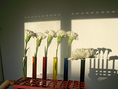 למחרת בבוקר נדהמנו לגלות את התוצאות. הפרחים שגבעוליהם שהו בצבעים ירוק, כחול וכתום נצבעו כמעט לחלוטין וניתן היה להבחין בכלי ההובלה שבעלי הכותרת. הפרחים שגבעוליהם נטבלו בצבעים צהוב ואדום נצבעו רק מעט ורק לאחר יומיים.