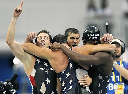 ערב התחרות, פלפס ומאמנו טענו כי הסיכון הכי גדול של מייקל בדרך להיסטוריה הוא משחה השליחים, 4X100 מ' חופשי, בגלל הרביעייה המצויינת שיש לצרפת בקטגוריה. אבל עם כל הכבוד לארבעה של הטריקולור, פלפס, גארט וובר-גייל, קולן ג'ונס ובעיקר ג'ייסון לזאק היו ענקיים והעניקו לארצות הברית את הזהב אחרי דרמה, שהסתיימה בשיא עולם אמריקאי - 3:08.24 דק'.