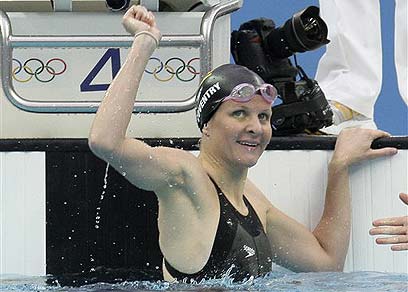 קובנטרי, בניגוד לפלפס למשל, לא שומרת כוחות רק לגמר ובמקצה השני של חצי הגמר ב-100 מ' גב קבעה שיא חדש, אחרי שסיימה בזמן של 58.77 שניות, שיפור של 20 מאיות לשיאה של האמריקאית נטלי קאפלין, שקבעה אותו בחודש שעבר במבחנים האמריקאים לבייג'ינג. קאפלין עצמה זכתה במקצה חצי הגמר השני, עם זמן של 59.42 ובגמר תהיה לה הזדמנות להחזיר לעצמה את השיא.