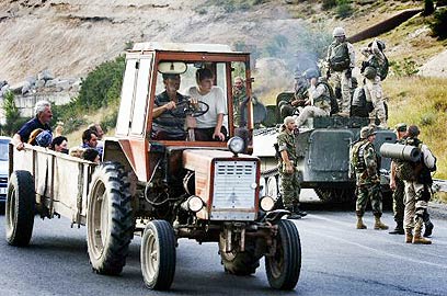 חיילים ועקורים בגאורגיה, היום (צילום: AFP)