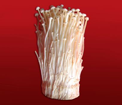 לפטריית האנוקי גבעול דק וארוך מאוד, צבעה צהבהב בהיר וטעמה מתקתק מעט ומזכיר ארומת נבטים. מצמיחים אותה על מצע מעוקר למניעת זיהומים, בחדרים סגורים עם בקרת אקלים. כיוון שהיא גדלה בתוך בקבוקונים עם צוואר ארוך, היא מתאמצת להגיע אל מקור אור, וכך מאריכה לעצמה את הרגל עוד ועוד. כשהיא גדלה בטבע, לעומת זאת, יש לה רגל קצרה יותר, אך אז הכובע שלה – המשמש גם כאיבר הרבייה - גדול ורחב יותר.