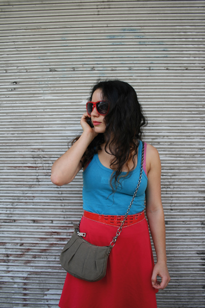 גופייה, מלפני עשר שנים; חצאית, יד שנייה; משקפי שמש, מחנות