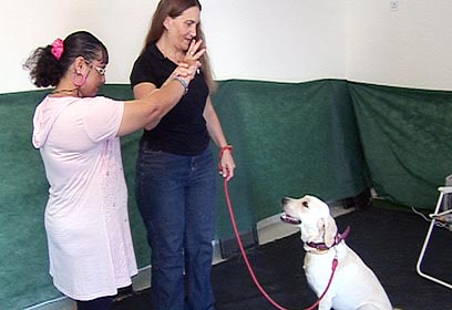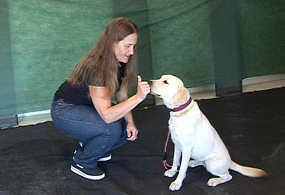 נעמי מסמנת לכלבה לשבת (צילום: רועי גזית)