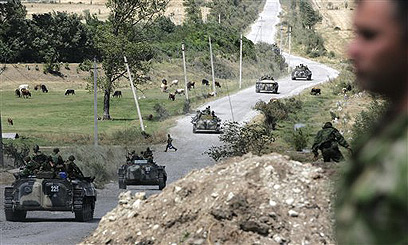 שיירה של כוחות רוסים נעה בגאורגיה (צילום: AP)