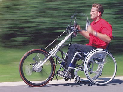 הפיתוח החדש מאפשר גם לנכים ליהנות מטרנד רכיבת האופניים: כיסא הגלגלים הסטנדרטי הופך תוך שניות לאופניים ידניים בעלי שלושה גלגלים. הכידון והגלגל הקדמי מתחברים לכיסא והרוכב מניע את הכסא/אופניים בתנועות ידו.