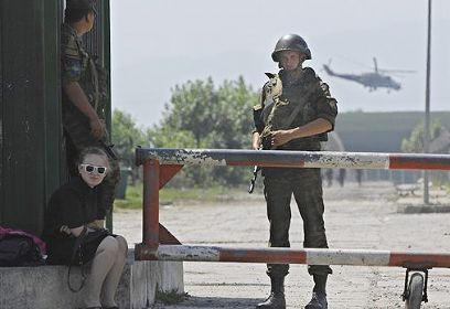 חייל רוסי בבסיס נטוש של צבא גאורגיה, היום (צילום: AP)