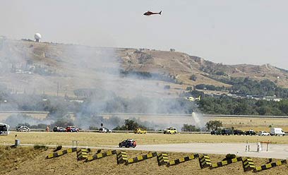 מטוס ממריא בשמים מעל זירת ההתרסקות (צילום: AP)