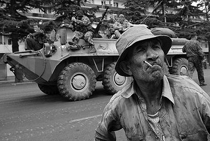 הסכם הפסקת האש בין רוסיה לגאורגיה נחתם עוד בשבוע שעבר, אבל הנוכחות הצבאית הרוסית במדינה עדיין שרירה וקיימת. במהדורות החדשות הצבא הרוסי נראה מאיים, מקצועי, מזוין בכלי נשק מתקדמים. אבל כשמתקרבים לחיילים הרוסים המוצבים בקו הקדמי, כקילומטר צפונית לעיר גורי, מתגלה תמונה שונה לגמרי. שם מתגלה הארמייה ה-58 של צבא רוסיה במלוא עליבותה: חיילים מרושלים, לבושים במדים מרופטים, חלקם בלי קסדות - אבל בעיניהם מבט רצחני. לרשותם ציוד לחימה מיושן, כזה שימי הזוהר שלו חלפו בשנות השבעים של המאה הקודמת - טנקים מסוג T-56 או T-62 ונושאי גייסות מדגם BMP-1, שיוצרו לפני 40 שנה ויותר. מפתיע, אבל בקו הקדמי הוצב כוח קטן יחסית, לא יותר מחטיבה. האם זהו הכוח שאמור לכבוש את טביליסי?